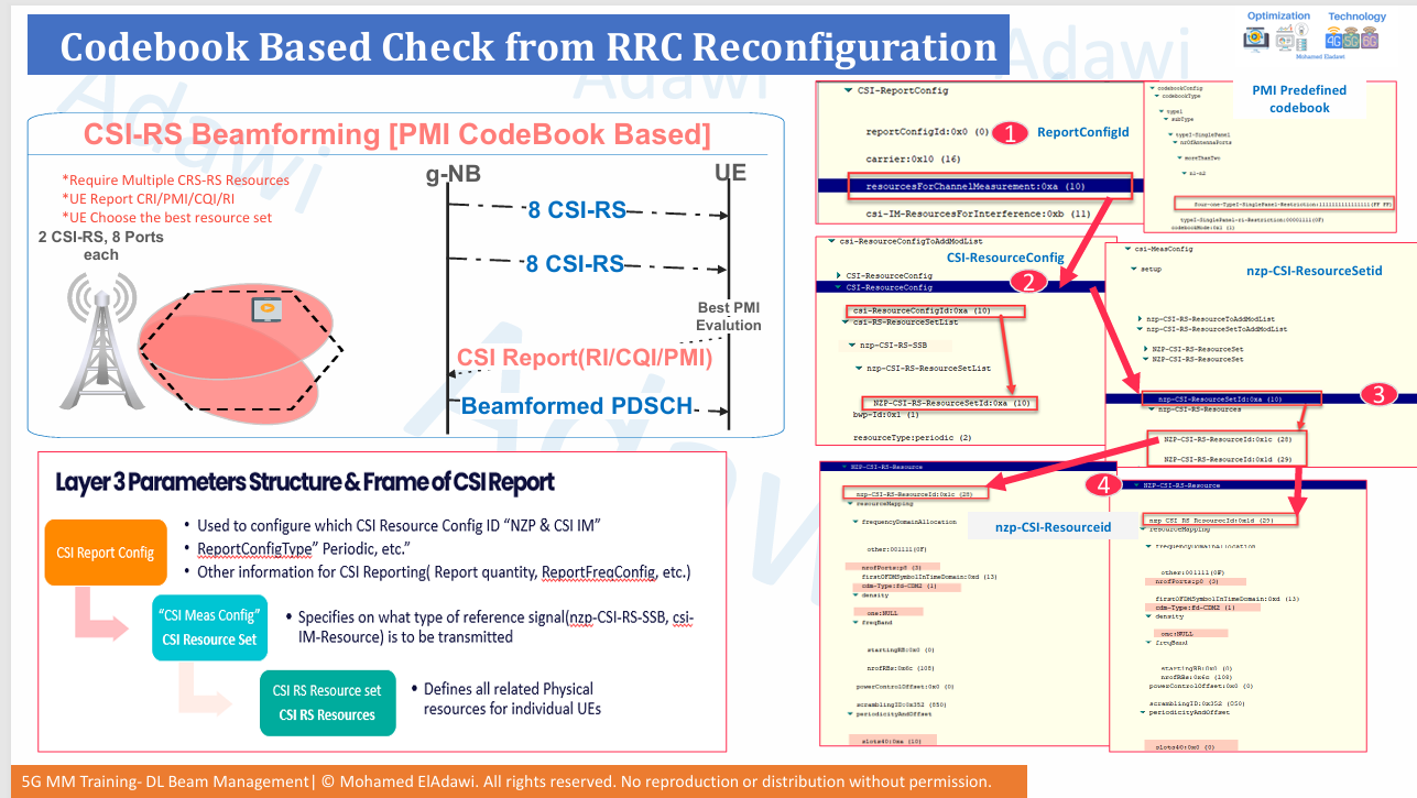nzp-CSI-RS-ResourceId | Identifies each individual CSI-RS resource inside the set | RRCReconfiguration -> csi-MeasConfig | Multiple resource IDs may mean multiple CSI-RS beams/resources |