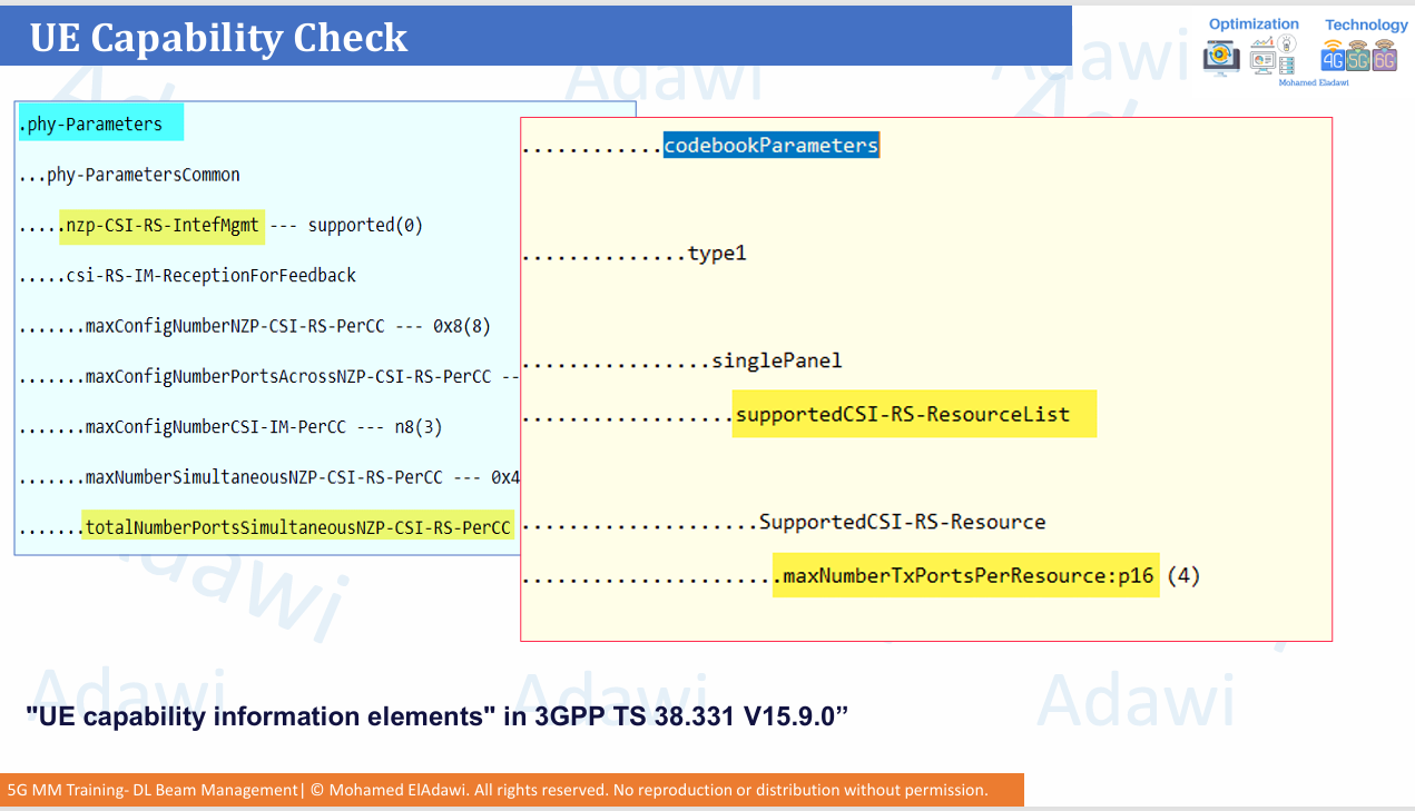 supportedCSI-RS-ResourceList / maxNumberTxPortsPerResource | UE capability for CSI-RS reception | UE Capability Information | Always check this before enabling higher CSI-RS port configurations |