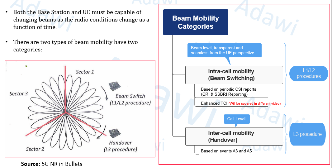 - A very important point is that inter-cell mobility relies on cell-level measurements, not beam-level measurements.