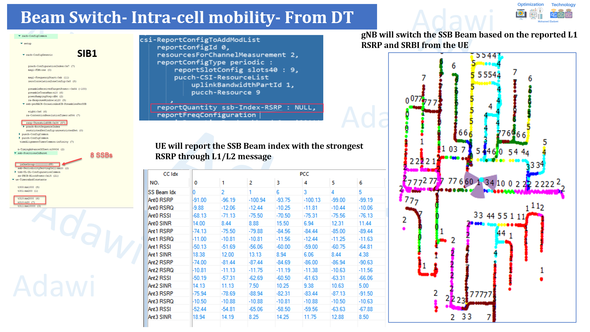 - i.e from the DT Logs: gNB will switch the SSB Beam based on the reported L1 RSRP and SRBI from the UE