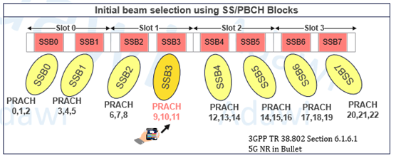 - If the threshold is met: UE uses dedicated PRACH preambles (Contention-free random access is use), where each SSB beam is mapped to specific preamble indices..
