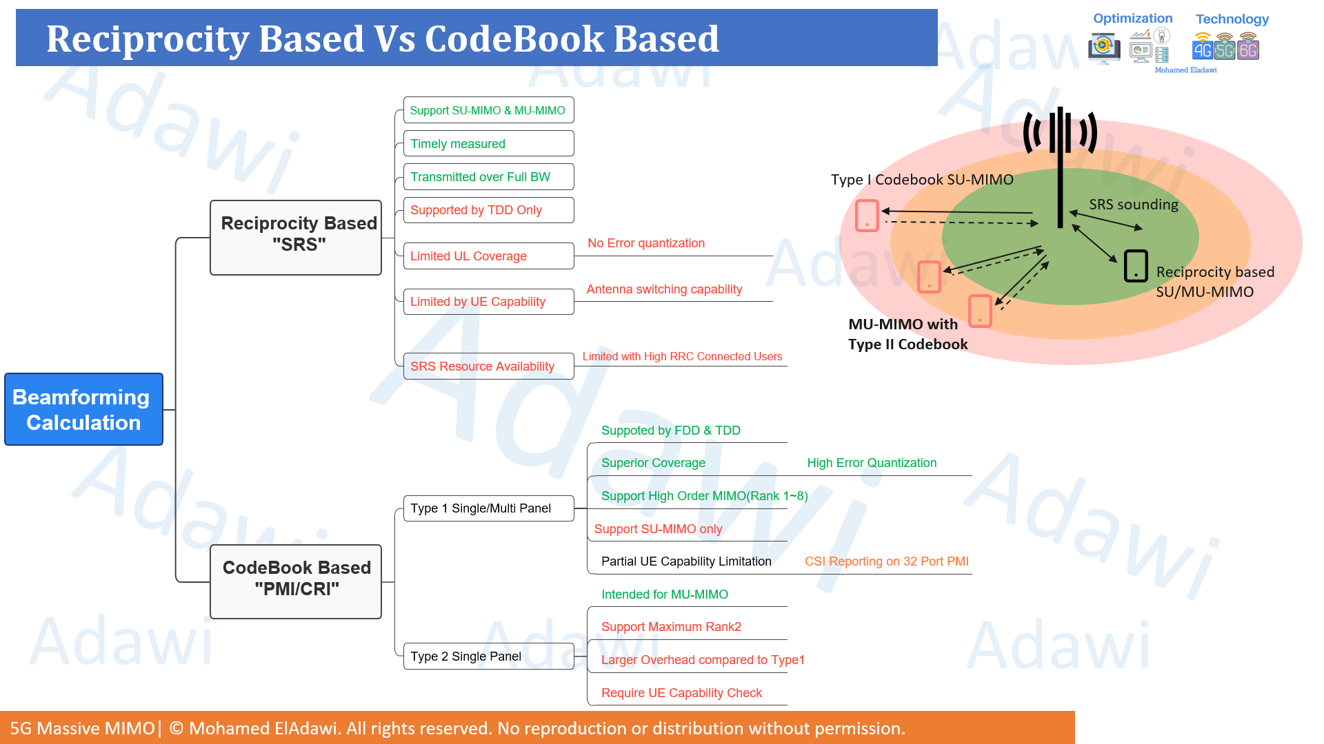 - Reciprocity-based beamforming can be very strong in TDD with good uplink sounding, while codebook-based beamforming is often more robust for edge users and supports both FDD and TDD.