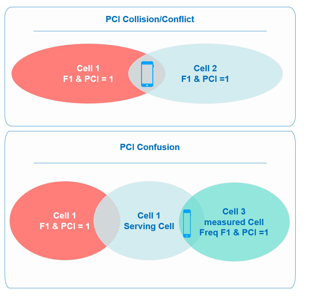 - PCI Collisions happen when nearby NR cells use the same PCI on the same frequency••This leads to mutual signal interference in cell overlapping areas where UEs Fail to correctly demodulate signals, increasing service drop rates.•