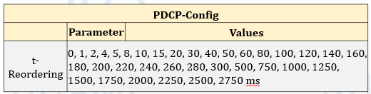 | t-Reordering | Receiver buffering timer for missing PDCP SN | PDCP-Config | Direct impact on latency and TCP behavior |