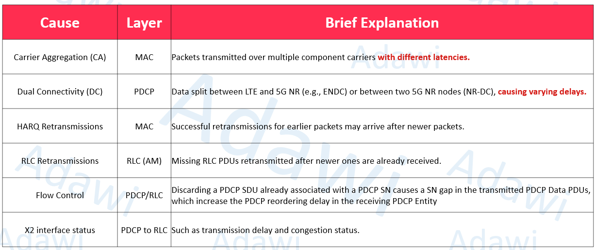 - Common RAN causes of out-of-order packets