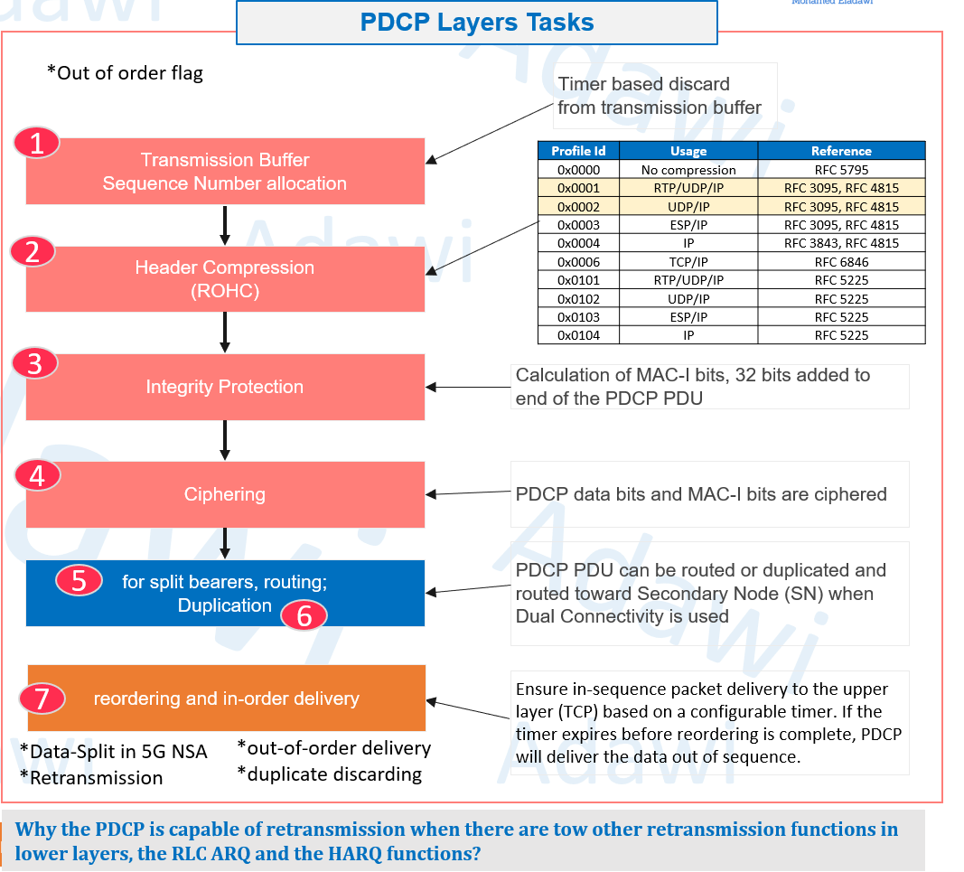 (2) PDCP layer tasks (what happens to a packet)