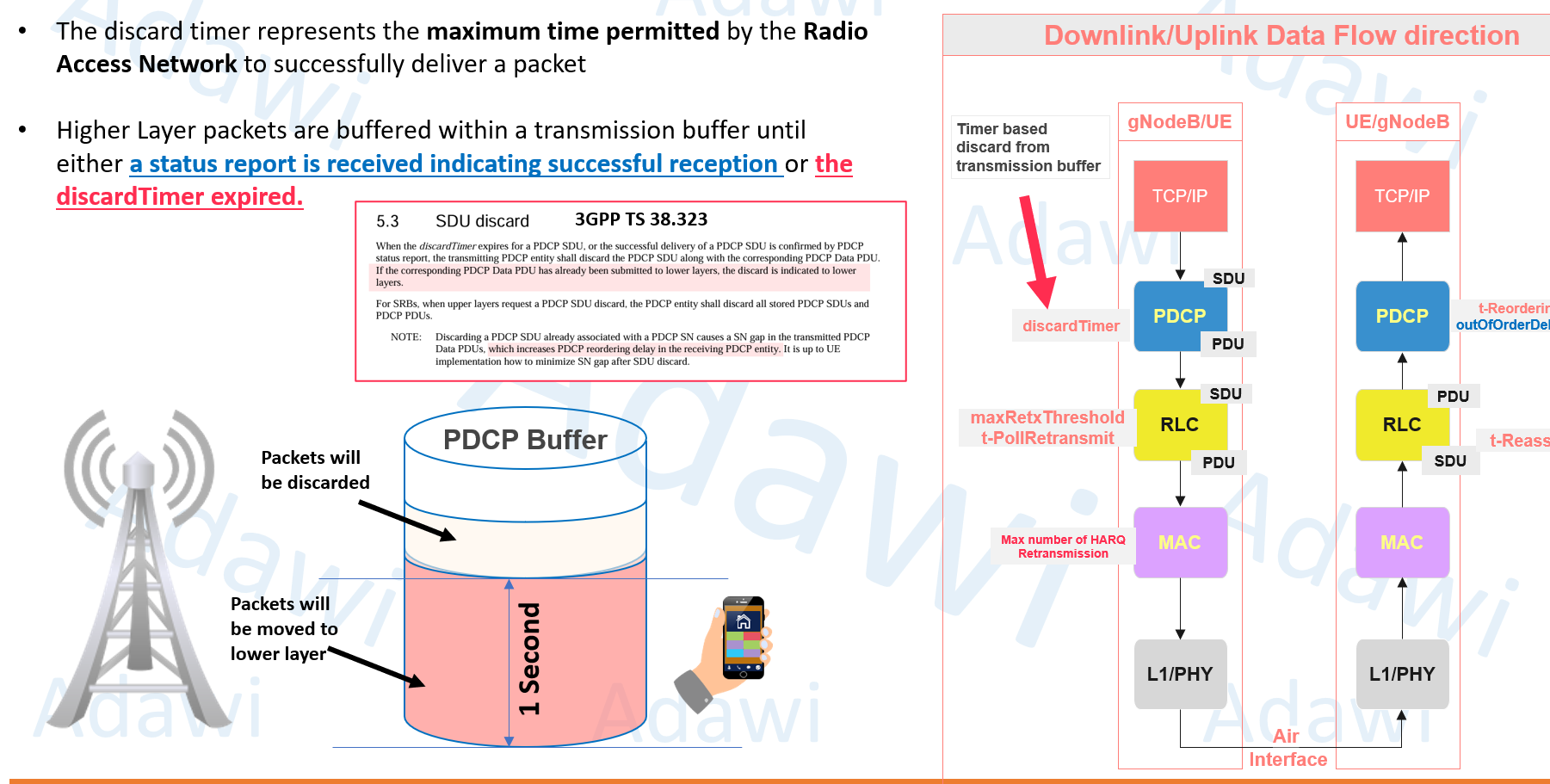 - discardTimer (PDCP transmission buffer) and why it matters