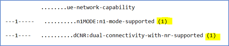 2ndone is through GSMAreana; for example, it will be added to the device capability if the UE supports 5G SA, as shown below. However, if required, this still needs to be verified from layer three messages and with the device vendor.