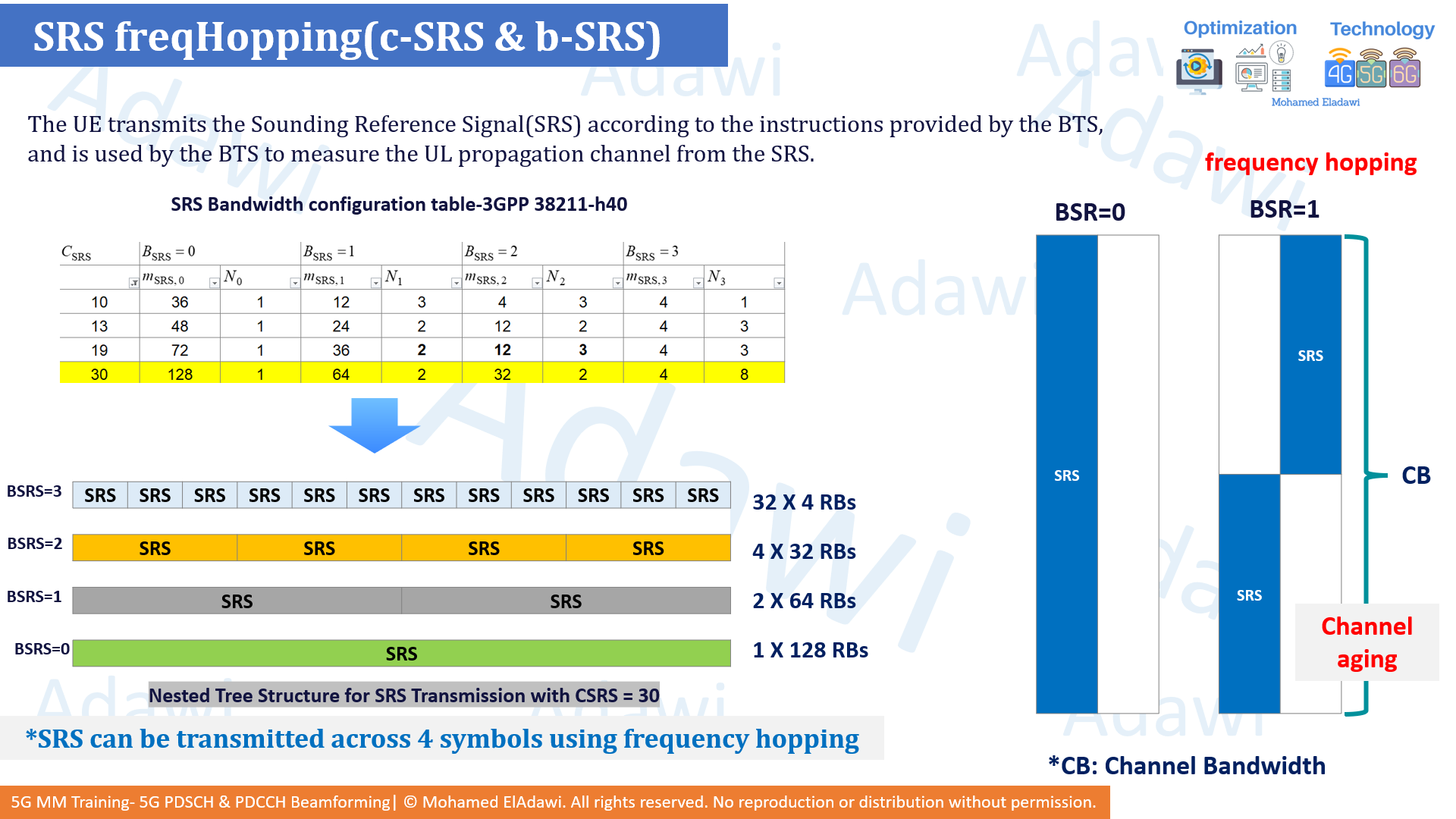 - Frequency hopping can improve SRS power density and coverage, but it introduces a channel-aging trade-off.